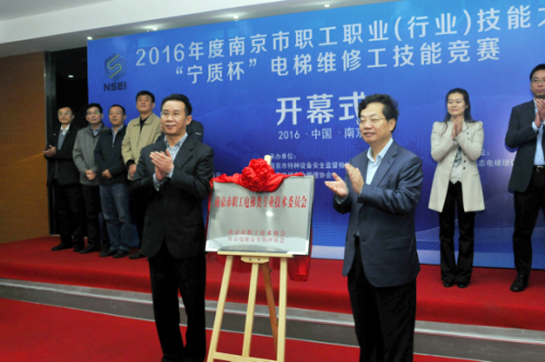 近日,在全市電梯維修工職業技能大賽開幕式上,南京市總工會黨組書記、常務副主席孫強和南京市質監局局長孫寧為“南京市職工電梯類專業技術委員會”揭牌,標志著“南京市職工電梯類專業技術委員會”正式成立。